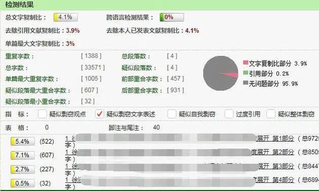 剩下就是按论文章节划分,每一章的重复情况。