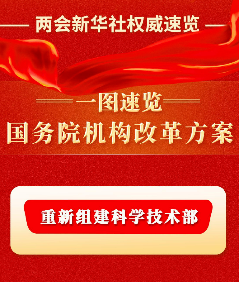 该议案提到,加强科学技术部推动健全新型举国体制、优化科技创新全链条管理、促进科技成果转化、促进科技和经济社会发展相结合等职能,强化战略规划、体制改革、资源统筹、综合协调、政策法规、督促检查等宏观管理职责,保留国家基础研究和应用基础研究、国家实验室建设、国家科技重大专项、国家技术转移体系建设、科技成果转移转化和产学研结合、区域科技创新体系建设、科技监督评价体系建设、科研诚信建设、国际科技合作、科技人才队伍建设、国家科技评奖等相关职责,仍作为国务院组成部门。将科学技术部的组织拟订科技促进农业农村发展规划和政策、指导农村科技进步职责划入农业农村部。将科学技术部的组织拟订科技促进社会发展规划和政策职责分别划入国家发展和改革委员会、生态环境部、国家卫生健康委员会等部门。将科学技术部的组织拟订高新技术发展及产业化规划和政策,指导国家自主创新示范区、国家高新技术产业开发区等科技园区建设,指导科技服务业、技术市场、科技中介组织发展等职责划入工业和信息化部。将科学技术部的负责引进国外智力工作职责划入人力资源和社会保障部,在人力资源和社会保障部加挂国家外国专家局牌子。版权声明:本文来源中国青年网、新华社等。如有侵权请联系删除,万分感谢。转载本文请联系原作者获取授权,同时请注明本文来源。