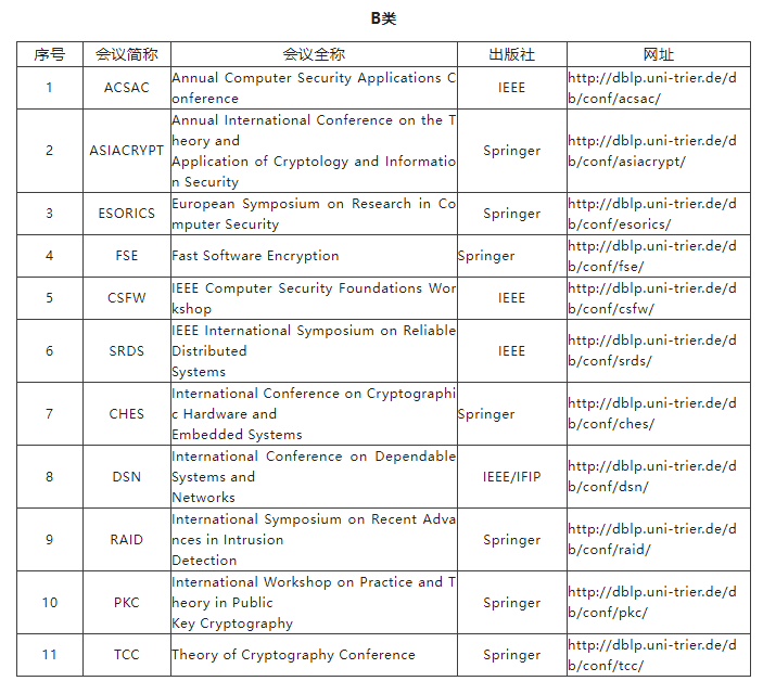 B类是指国际上著名和非常重要的会议、刊物,代表该领域的较高水平,鼓励国内同行投稿;