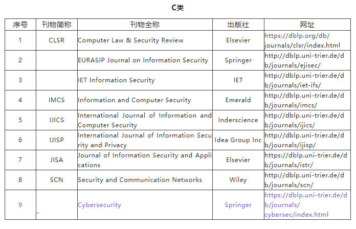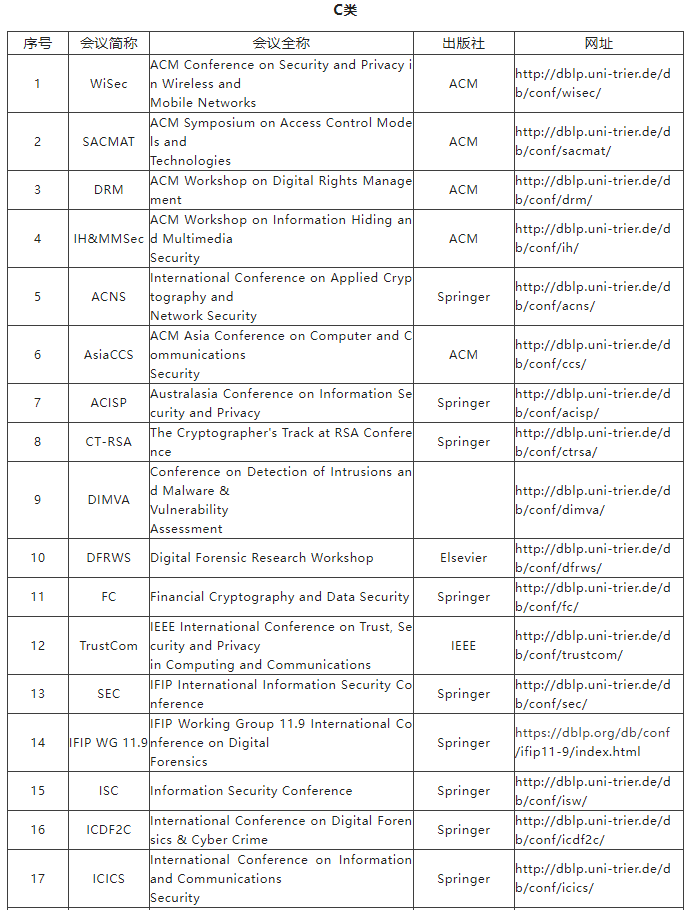 C类指国际上重要、为国际学术界所认可的会议和刊物。