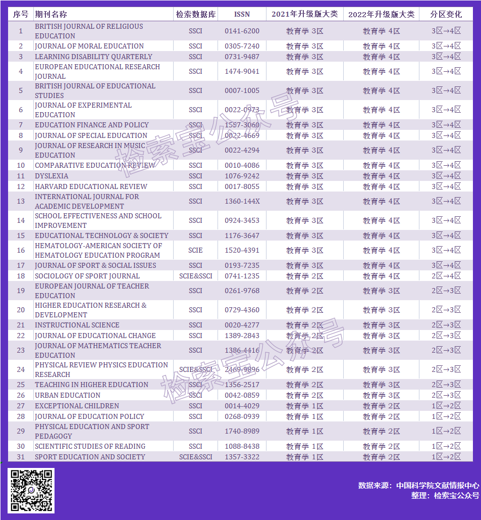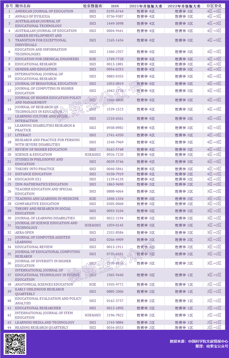以上就是教育学大类下期刊的分区整体变动情况,欢迎大家持续关注。后续我们也会分享更多学科,大家有想了解的学科也可以后台发送给我们,我们会优先整理哟~