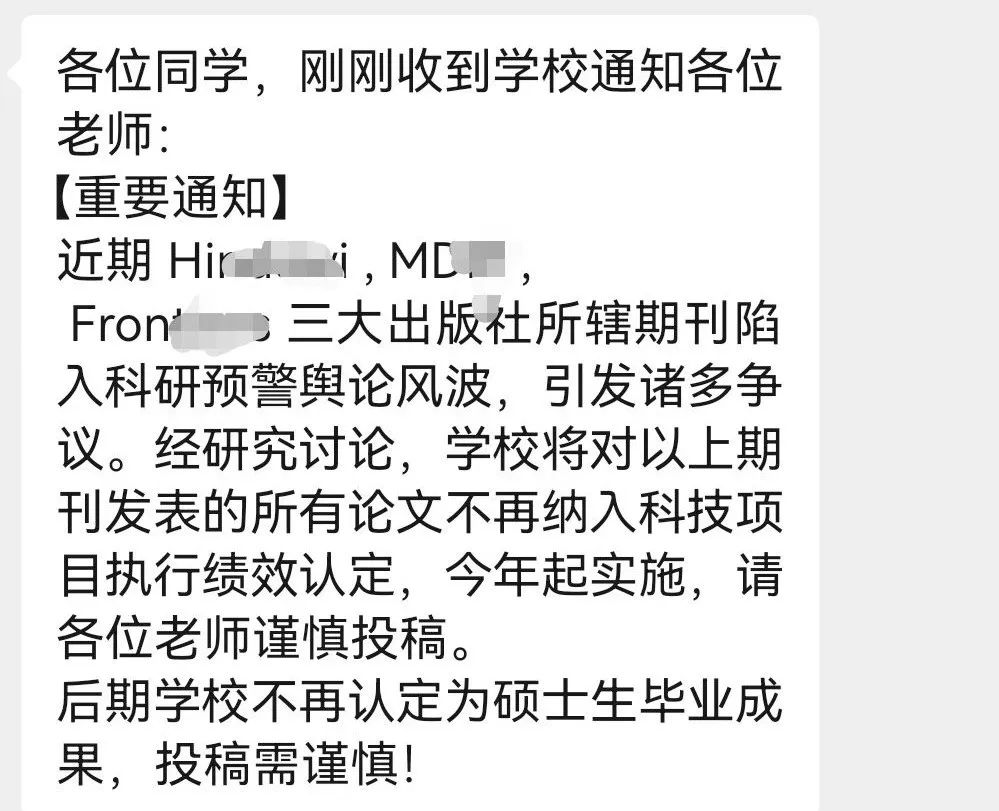 2021年1月5日,Wiley以2.98亿美元收购了Hindawi Limited。彼时,Hindawi已是全球增长最快的OA出版机构之一 (是的,那时候已经有几本知名的水刊了)。作为老牌的国际顶级出版社,Wiley收购的目的,显然是为了增强其在OA期刊的布局,借此弯道追击风头正劲的MDPI和Frontiers两个后起之秀。然而天有不测风云,今年三月,Web of Science一口气剔除了19本Hindawi期刊,这犹如晴天霹雳,瞬间让这个OA品牌陷入了风口浪尖。雪上加霜的是,随着Hindawi在学术诚信和同行评议方面的声誉损害,国内各大学术机构开始跟进出台相应“对策”,特别是开始以前所未有的“打包拉黑” 方式拉黑Hindawi所有期刊。如江苏省肿瘤医院、浙江大学附属第一医院、安徽省立医院、浙江工商大学等。一些高校硕士毕业也发布通知,Hindawi 出版社的期刊均将不被认可用于毕业,不建议向Hindawi旗下杂志投稿。